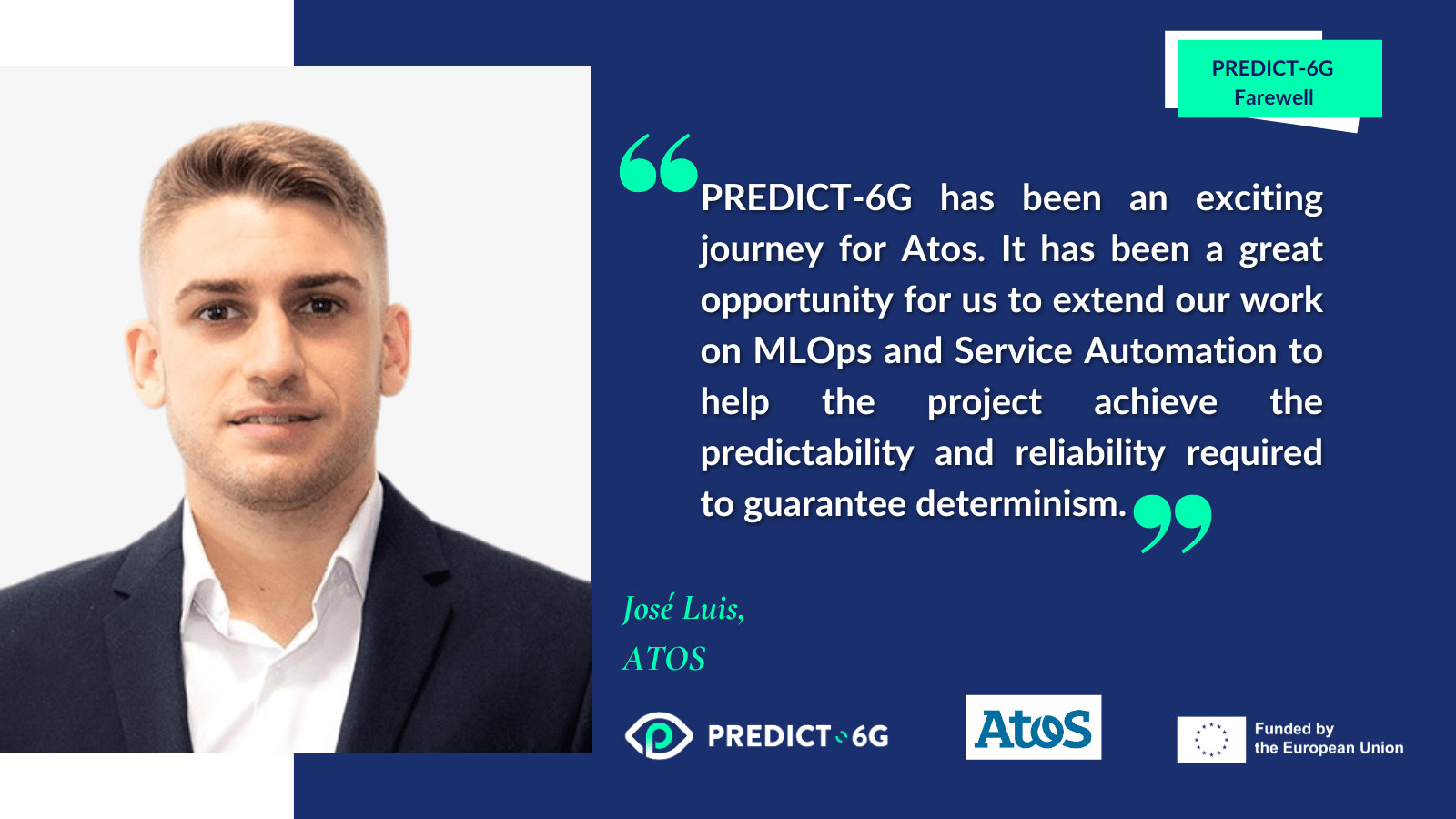 José Luis Cárcel on behalf of Atos, leader of the PREDICT-6G ‘Frictionless inter-domain orchestration and network control’ task. “PREDICT-6G has been an exciting journey for Atos. It has been a great opportunity for us to extend our work on MLOps and Service Automation to help the project achieve the predictability and reliability required to guarantee determinism”.
