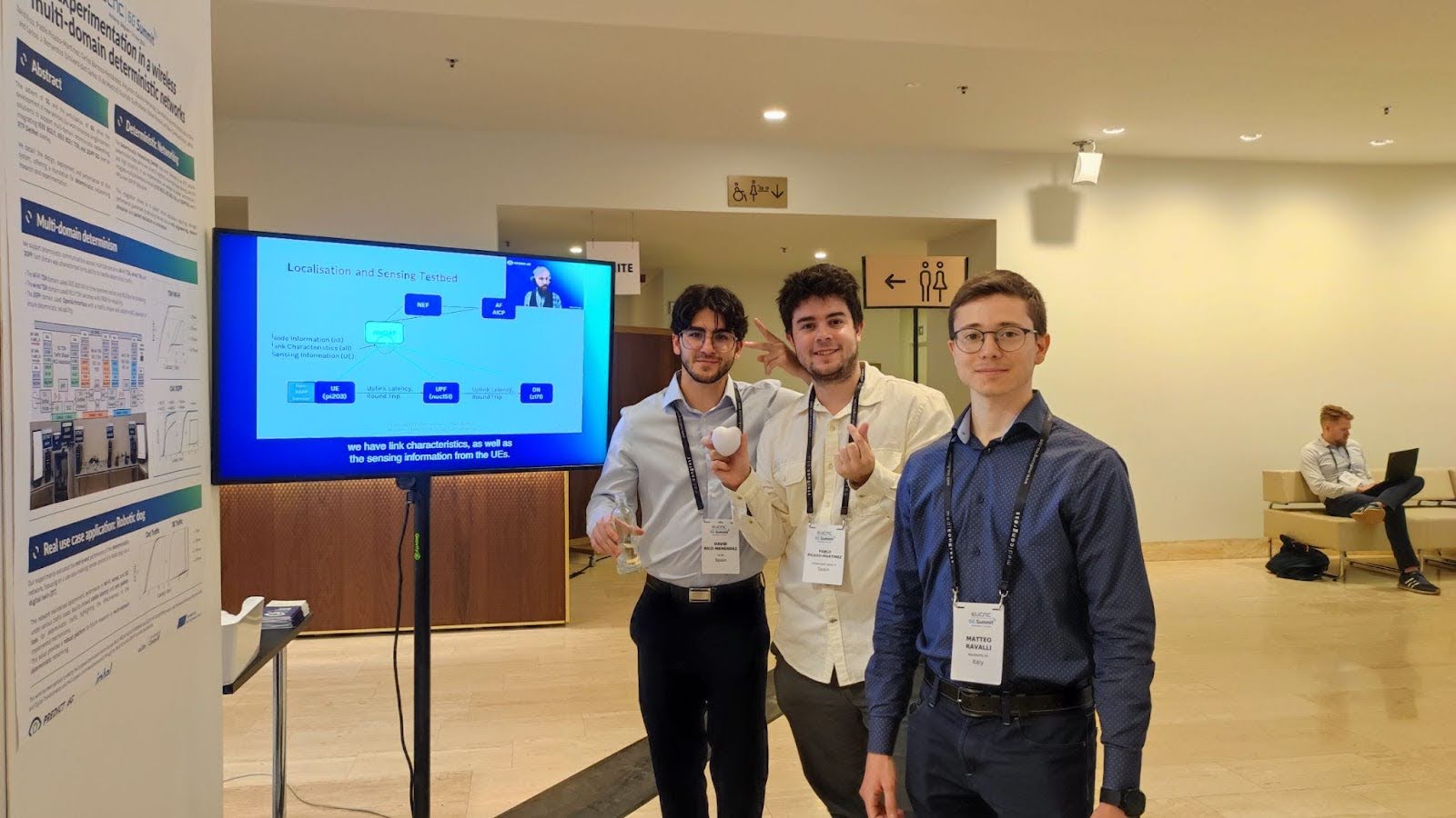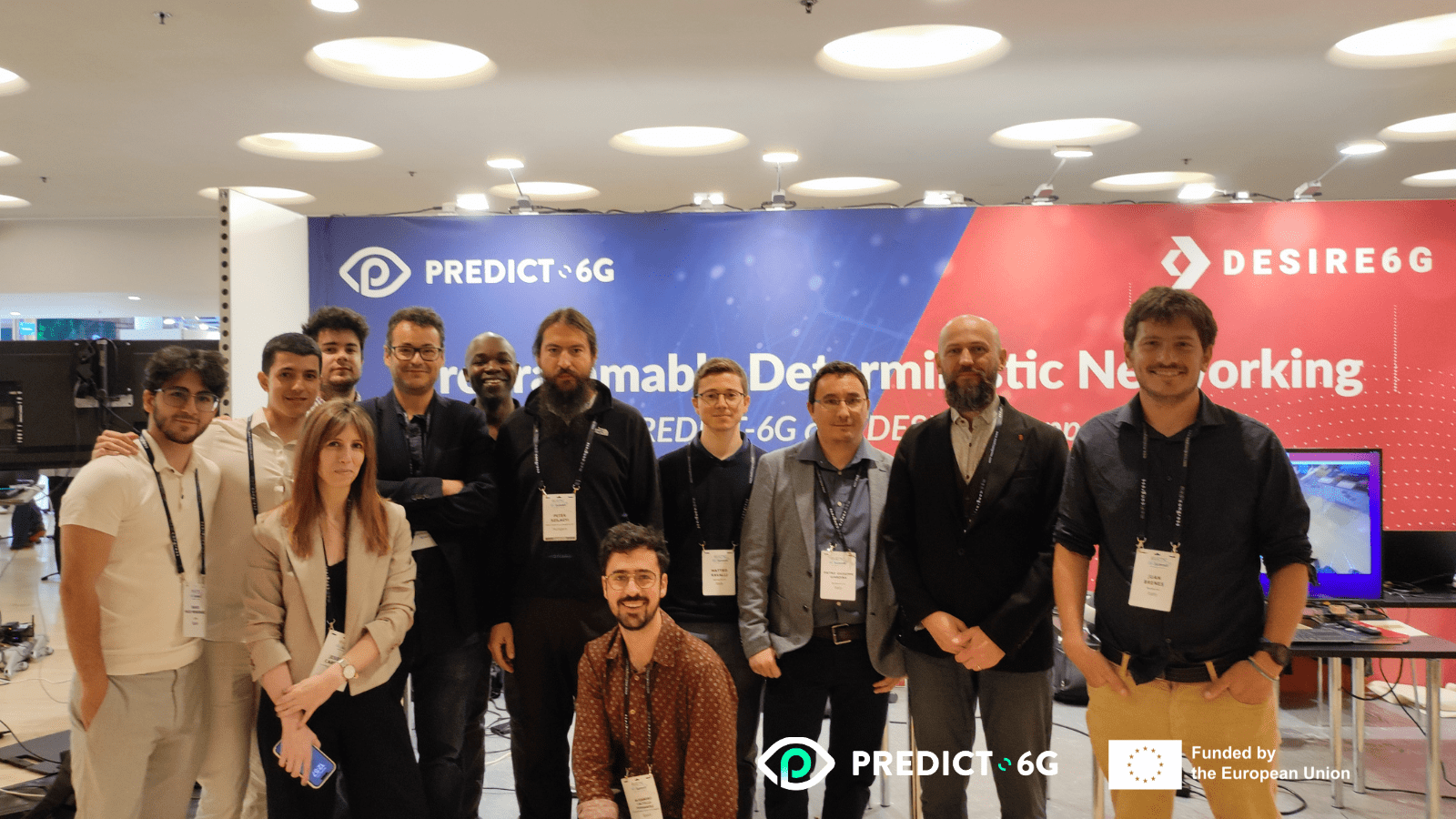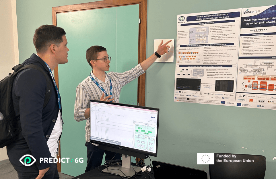 PREDICT-6G was represented by our consortium member Nextworks, which had a booth showcasing a poster and the screening of the demo jointly developed with InterDigital: “Monitoring Data collection Integration with a Sensing-Enabled 3GPP Technology Domain”. The demo presents a multi-domain monitoring data collection for the PREDICT-6G project. It automates the collection of Layer 4 latency and sensing data from a 3GPP domain, feeding it into an AI-driven control plane and a digital twin application. The demo integrates the AI-Driven Control Plane (AICP) to manage service provisioning and data monitoring. You can watch it here.