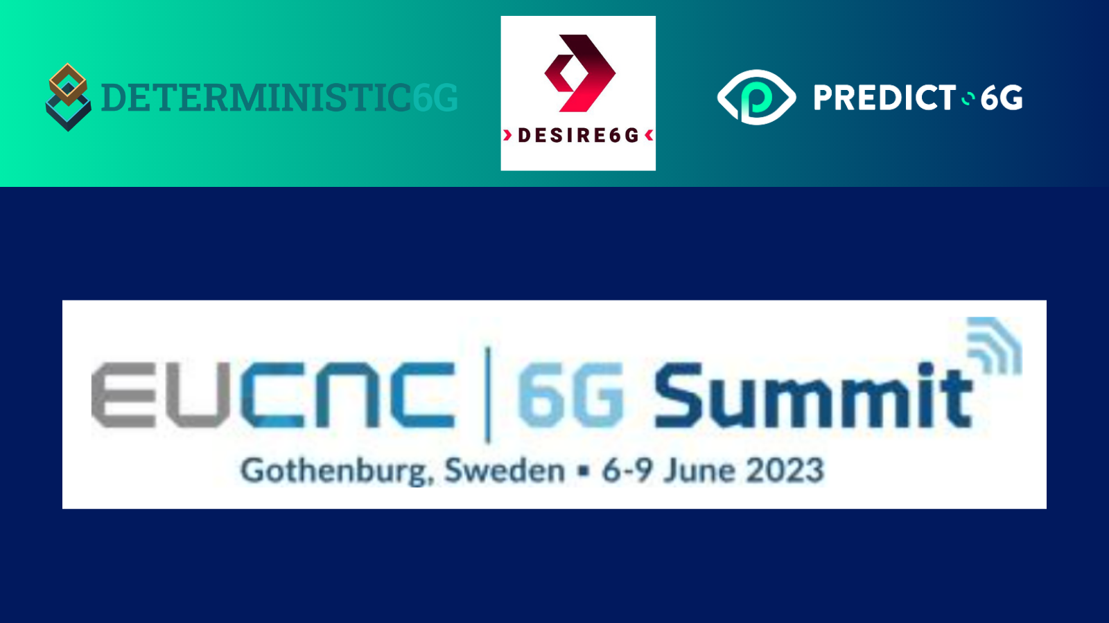 PREDICT-6G, together with DETERMINISTC-6G and DESIRE-6G, will present a joint workshop titled “Future deterministic programmable networks for 6G” in the context of the 2023 EUCnC & 6G Summit, which will take place the 6-9 of June in Gothenburg, Sweden.
