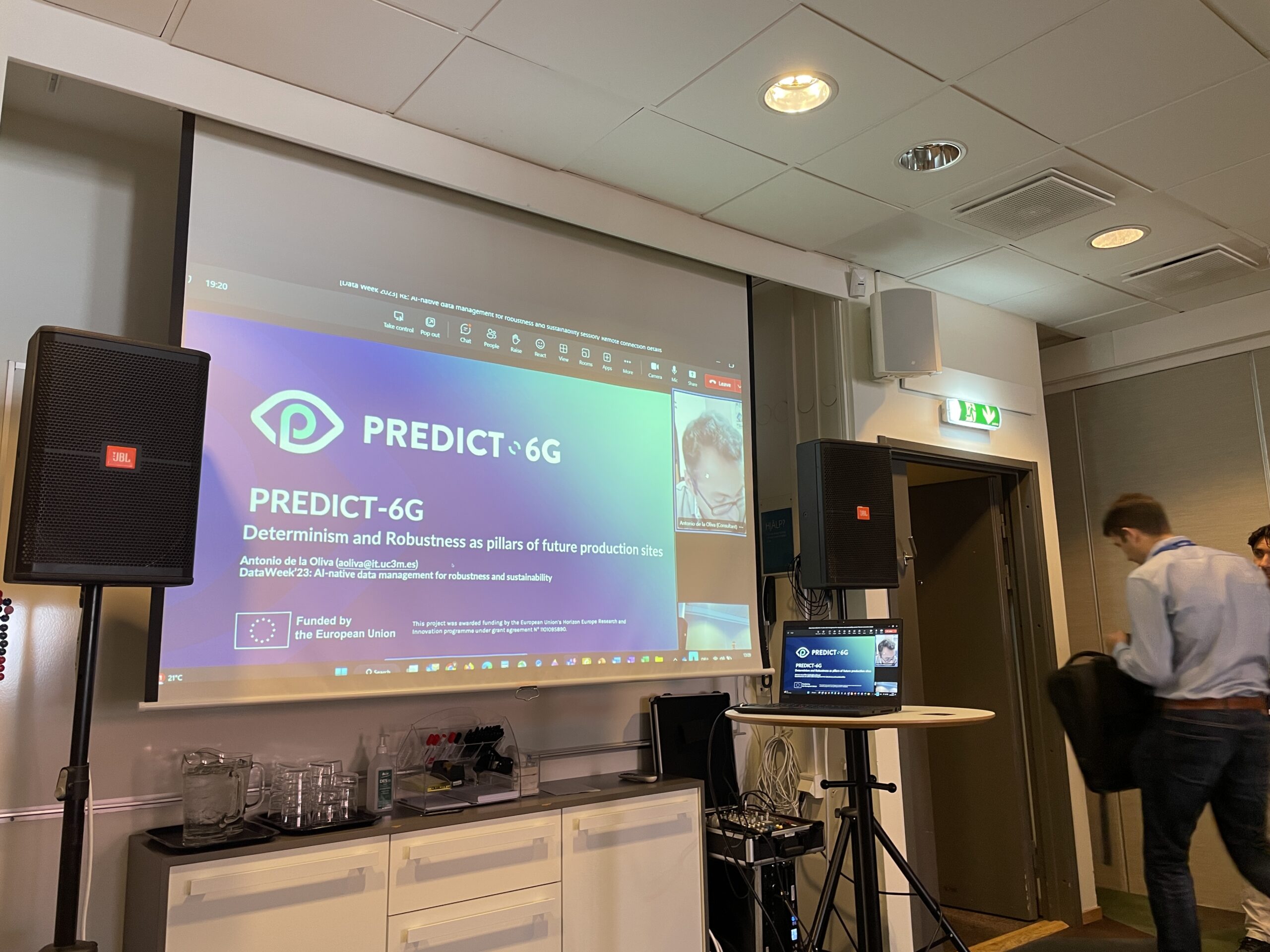 On the 6th of June, Dr. Valerio Frascolla had the pleasure to chair the workshop “Future deterministic programmable networks for 6G”, a joint endeavour of PREDICT-6G and its two sister projects DESIRE6G and DETERMINISTIC6G. With the aim of opening a space for debate on the different approaches to determinism being pursued, the workshop brought together speakers from the three projects to present the main research topics being investigated to an audience of 70 people.