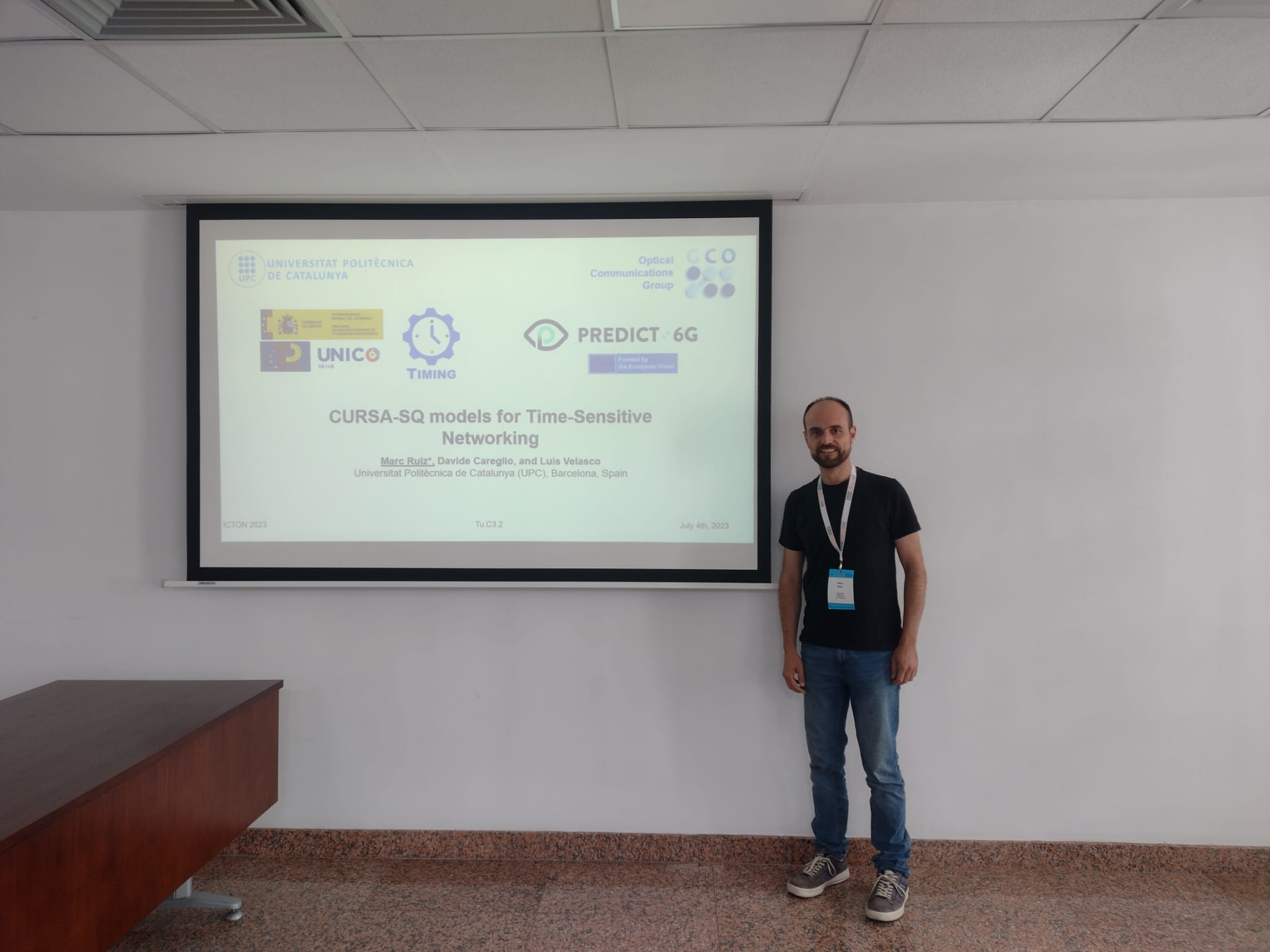 The following day, July 4, also as part of the B5GNeO workshop invited presentations, Marc Ruiz from the UPC presented the paper “CURSA-SQ models for time-sensitive networking”. This paper focuses on analysing the impact of conveying time-sensitive traffic in operators’ networks when such traffic is mixed with best-effort traffic. In particular, extensions to a continuous G/G/1/k queue model are proposed to evaluate two different Ethernet technologies, synchronous and asynchronous, supporting time-sensitive flows in terms of their influence on the performance of best-effort traffic. You can read the full paper here.